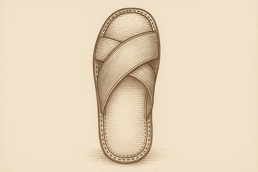 Chinelo é um calçado aberto e leve, com solado plano e tiras que seguram o pé durante deslocamentos curtos em superfícies regulares.