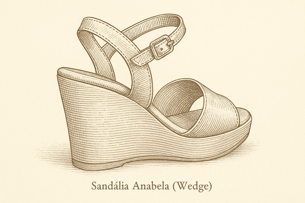 - Anabela de tiras finas: estética delicada, bom caimento com vestidos e alfaiataria. Melhor para: eventos sociais e ambientes formais moderados.