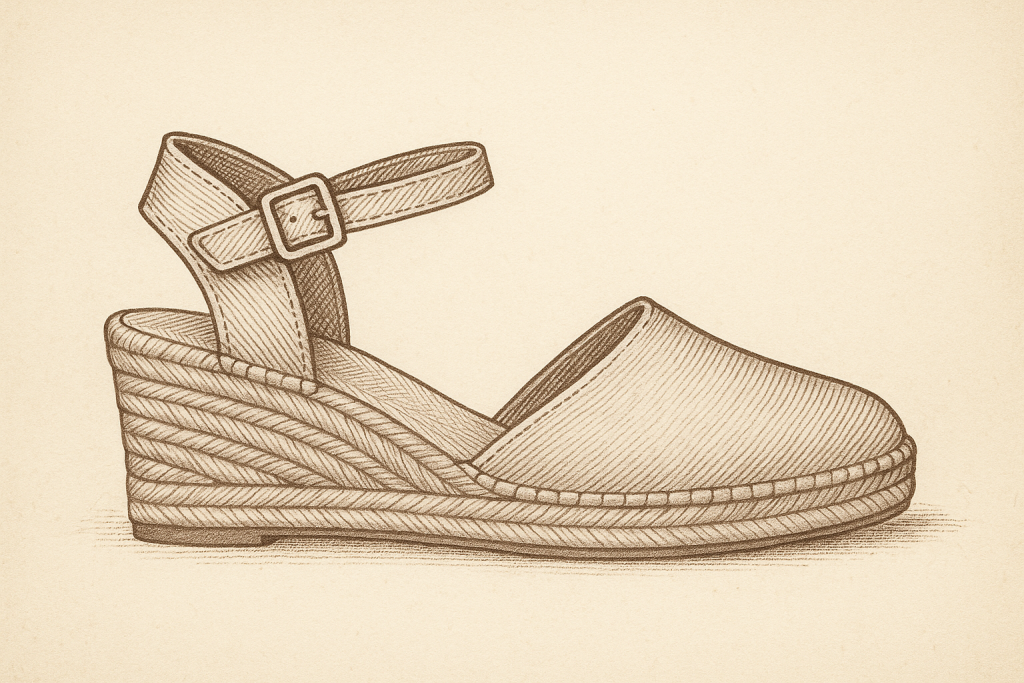 Sandália espadrille é um calçado com entressola de corda ou juta trançada, visual artesanal, leve e arejado, tradicional em climas quentes.