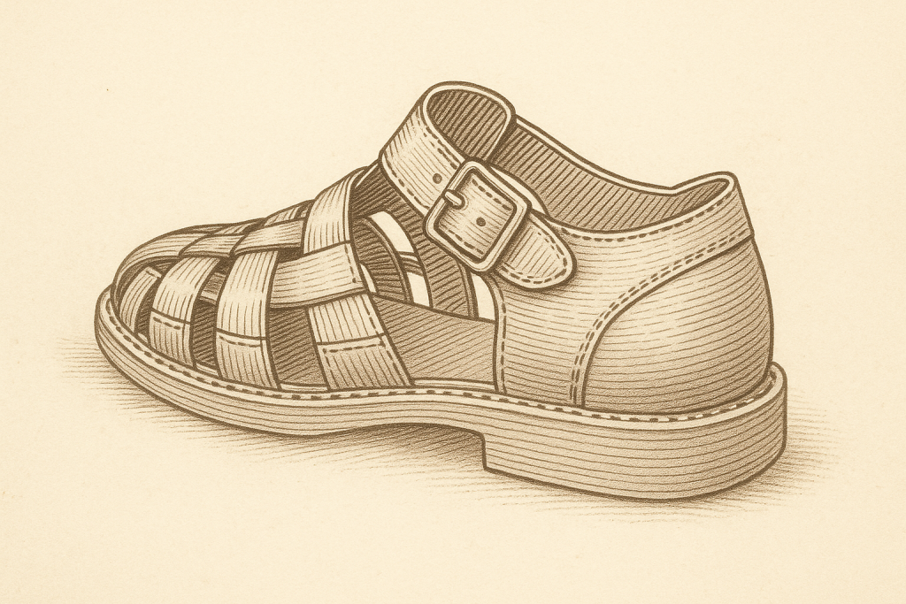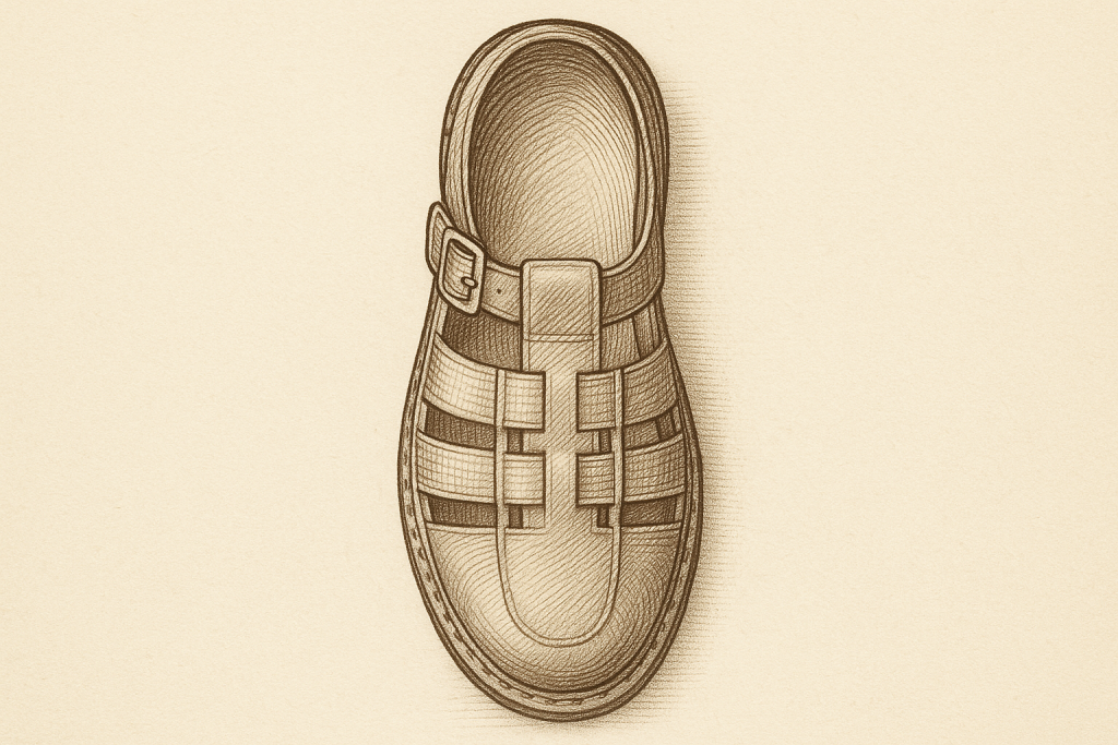 Definição: a sandália Fisherman, também chamada pescador, tem tiras entrelaçadas e biqueira fechada com aberturas, unindo proteção dos dedos e ventilação.